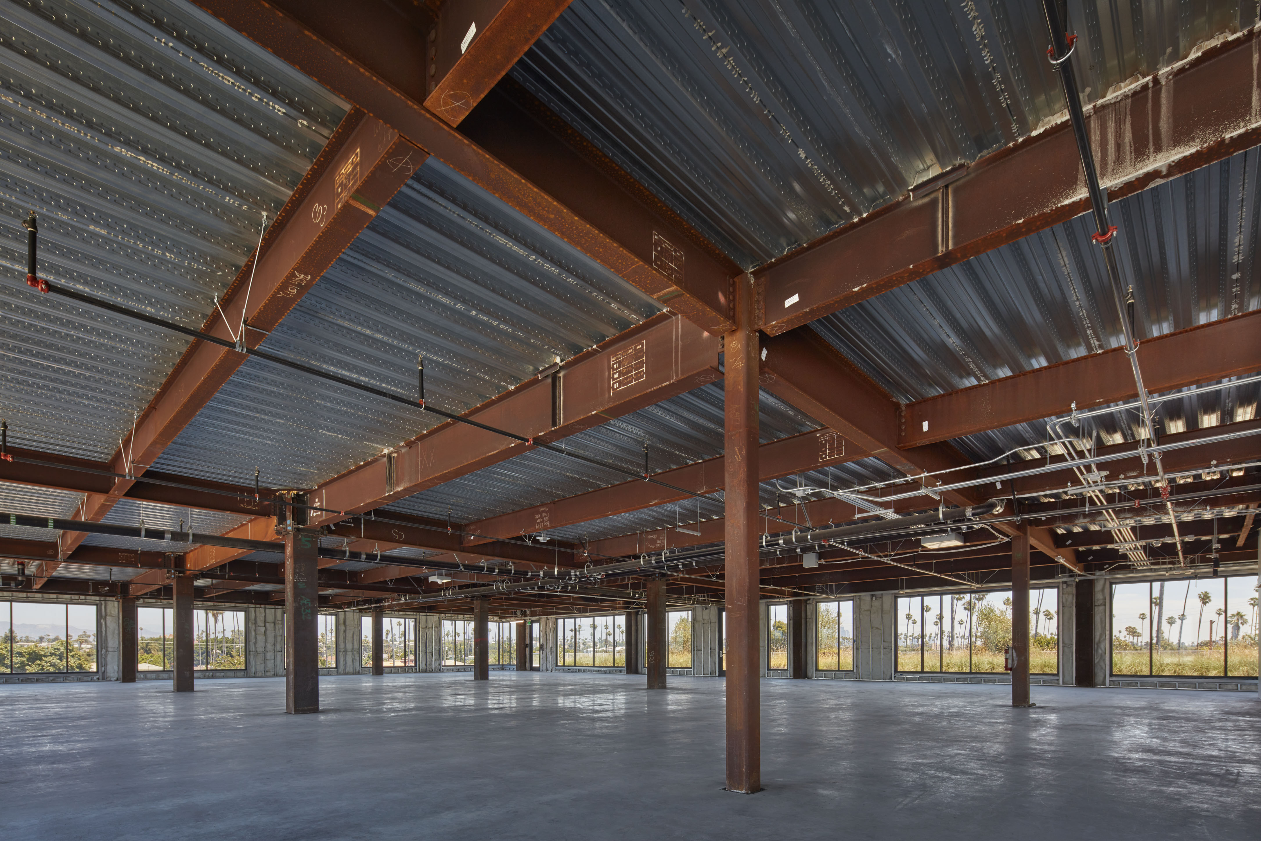 Not only did ConXtech provide the framework of the building, but once inside the exposed steel beams also deliver an artful centerpiece to the space, and the perfect backdrop for the intended creative office use.